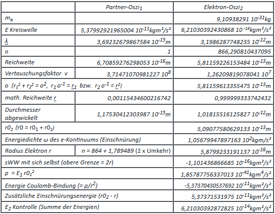 Higgs particle and e-boson (Boson of the electron): If one calculates the mass defect of the e-boson due to the constriction in the space-time continuum, one arrives at the mass of the H-boson = 2,25241710053953 10-25 kg by halving it. Charge and spin of the e-boson are 1, of the H-boson 0. Charge and spin can be cancelled by identical but counter-rotating waves, which requires at least two e-bosons. In this case, the circular waves form an osci-eight. Even if the quantum numbers are now arithmetically correct, the geometric result is a dipole moment. The solution is 4 e-bosons arranged in a square by rotating the circular wave alternately to the right and to the left, thus cancelling the dipole moments of the individual combination of two. Relative, the extent of constriction remains the same: doubling at twice the size of the structure. The mass defect is true now. The generation and decay channels of the H-boson support this idea!